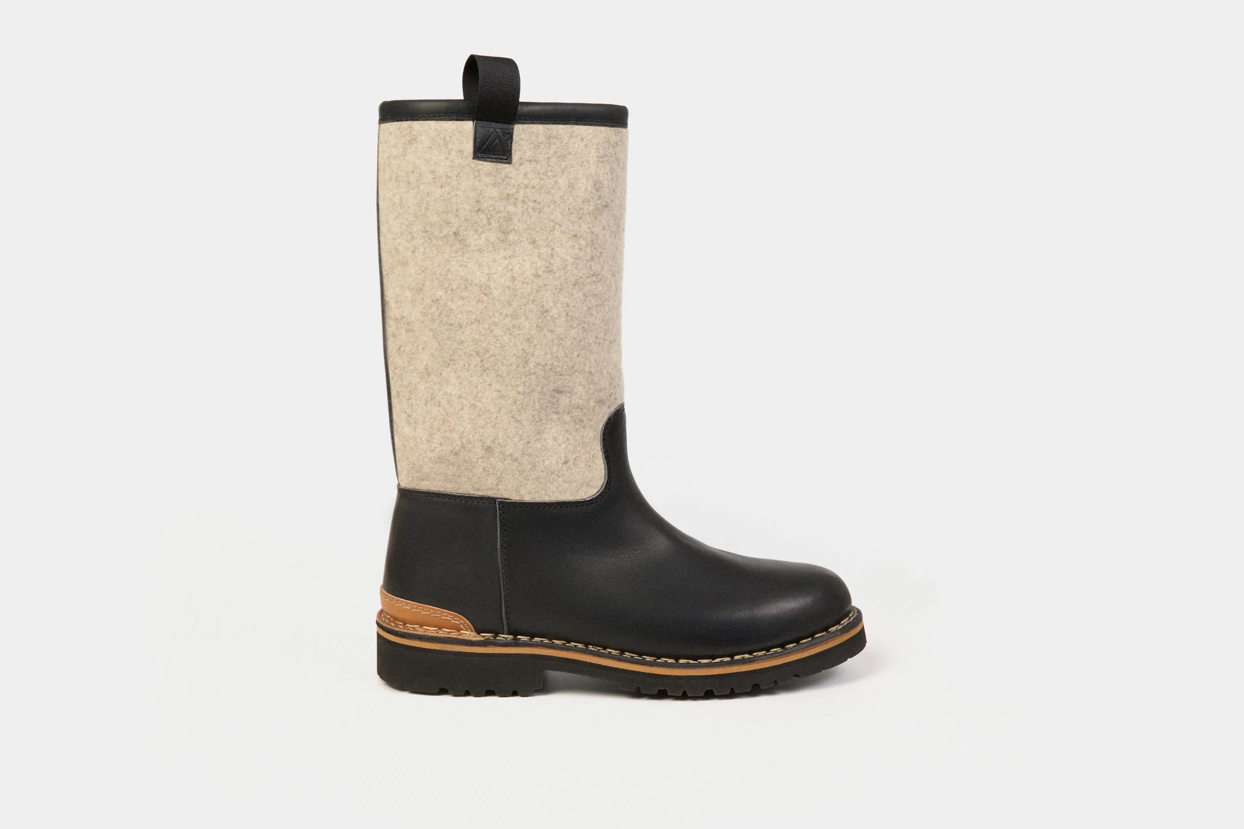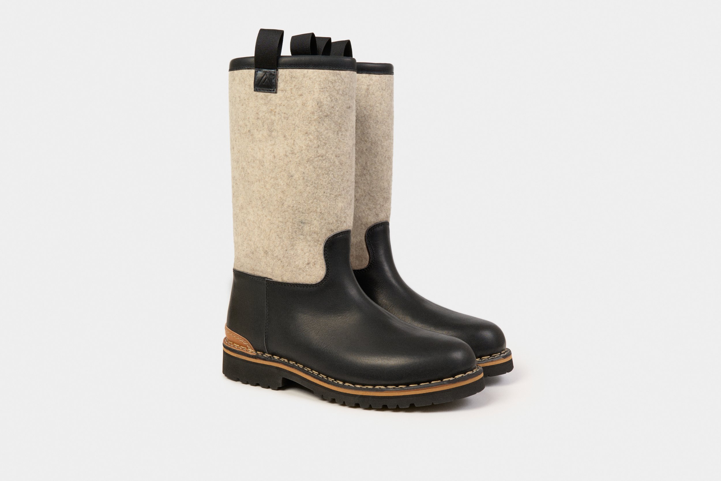 The Fuji, tall boots in Full Grain Leather and Natural Wool Felt, are an elegant fusion of past traditions and future horizons.
